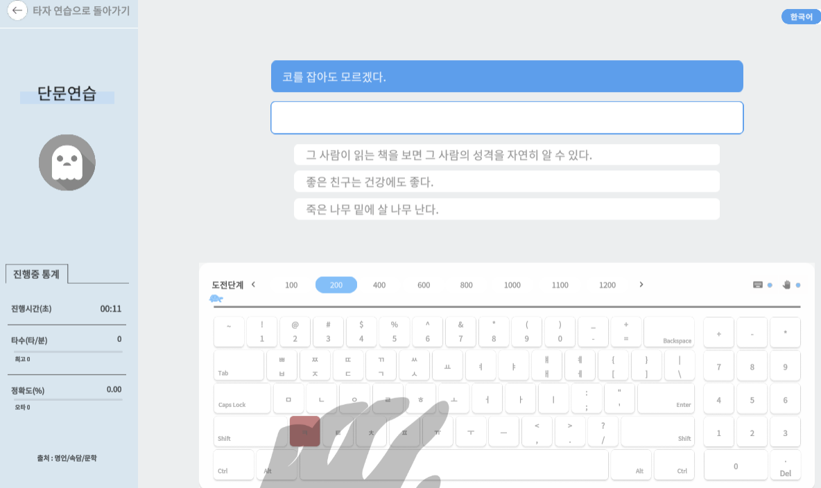 타자 속도를 높이고 싶은 사용자라면 긴 글 연습과 필사 기능을 활용하는 것이 좋습니다. 다양한 길이의 글을 직접 타이핑하면서 속도와 정확도를 함께 개선할 수 있습니다. 필사 기능은 글을 쓰듯 따라 입력하는 연습 방식으로, 문장 구성력과 집중력을 향상시키는 데에도 효과적입니다.