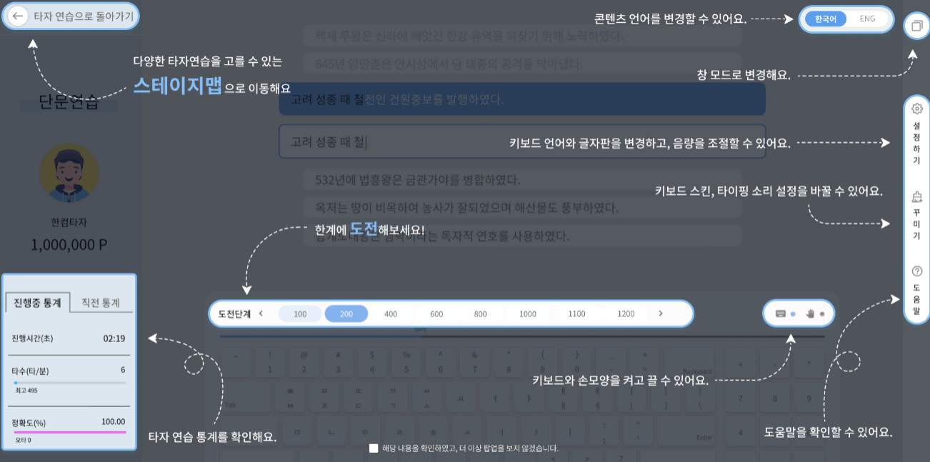 손끝으로 전해지는 즐겁고 유익한 한컴타자의 타자연습과 게임을 즐겨보세요.